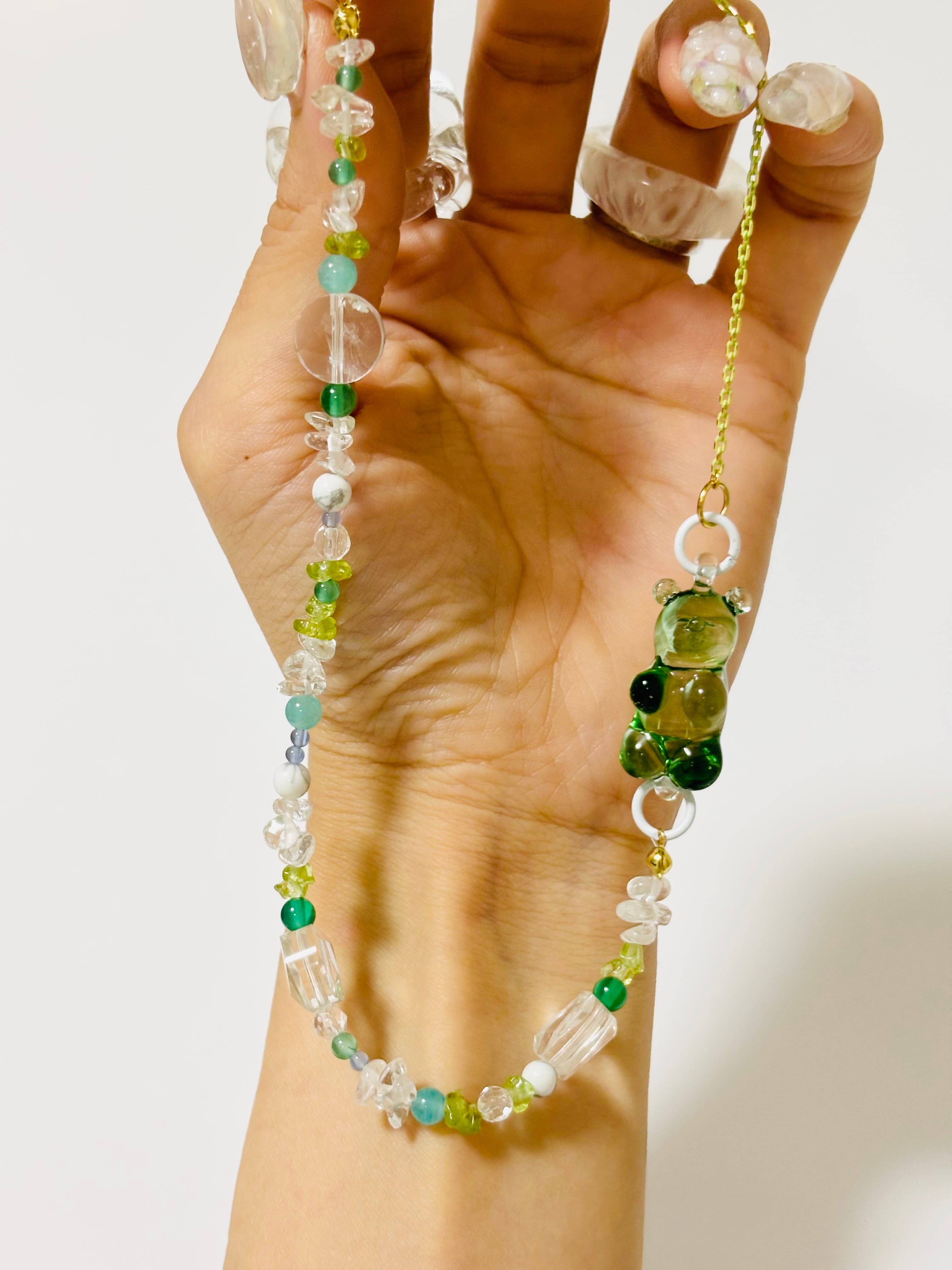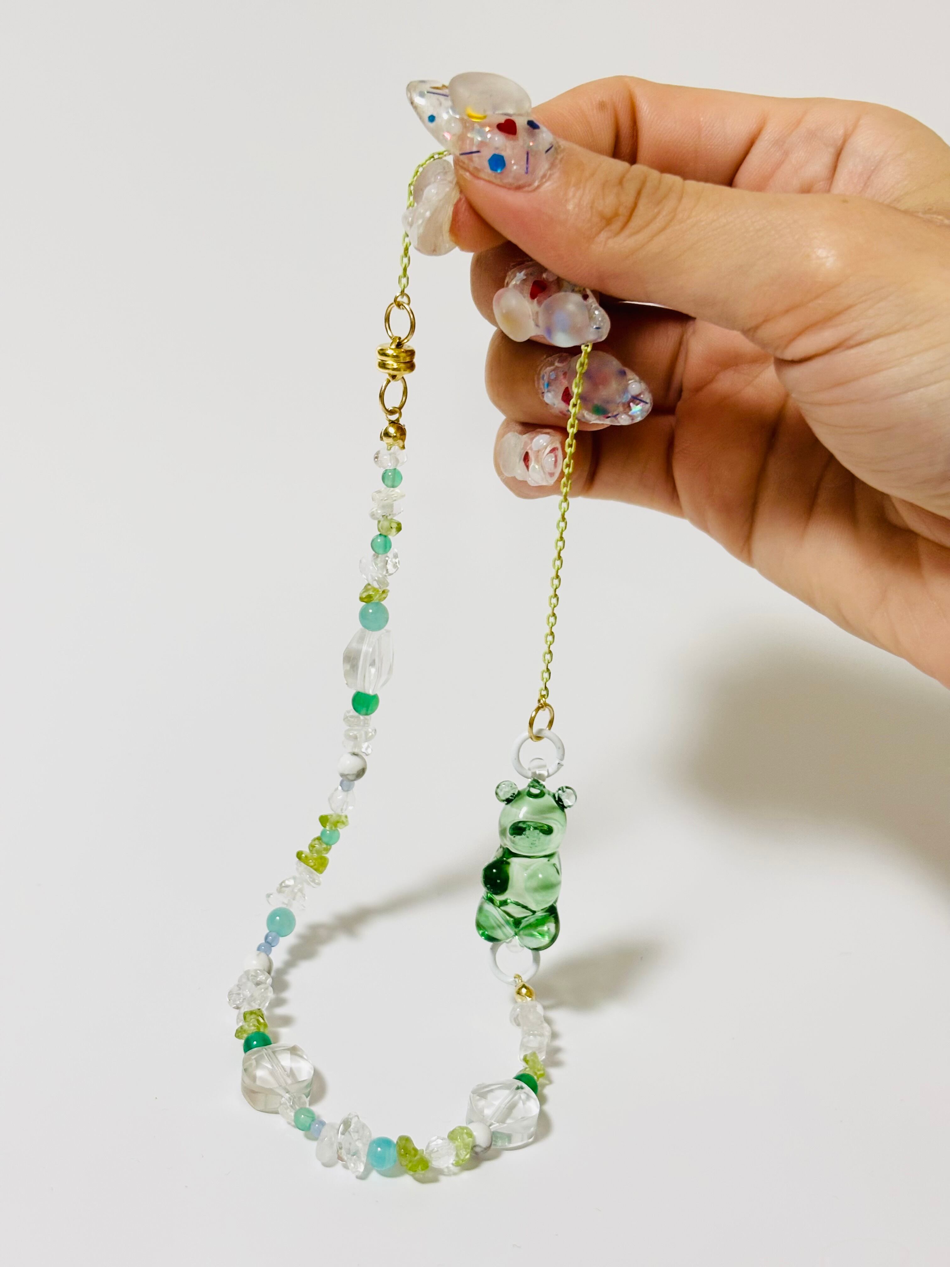 そんな方に向けて、着けて歩いた時、鏡に映ったとき、天然石のパワーとくまが寄り添ってくれるようなネックレスにしました♪