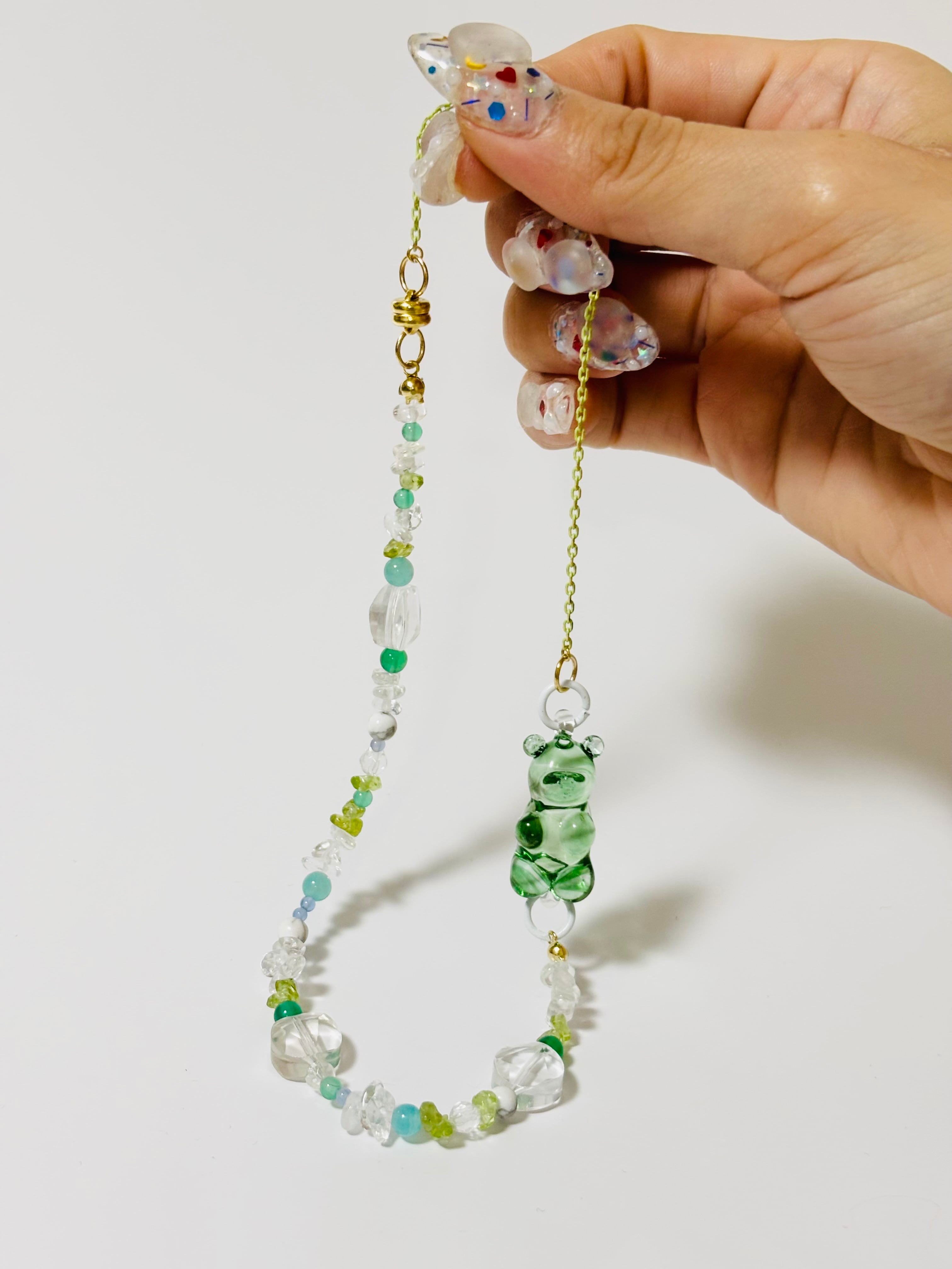 ・素材:ガラス・天然石・カラーチェーン
