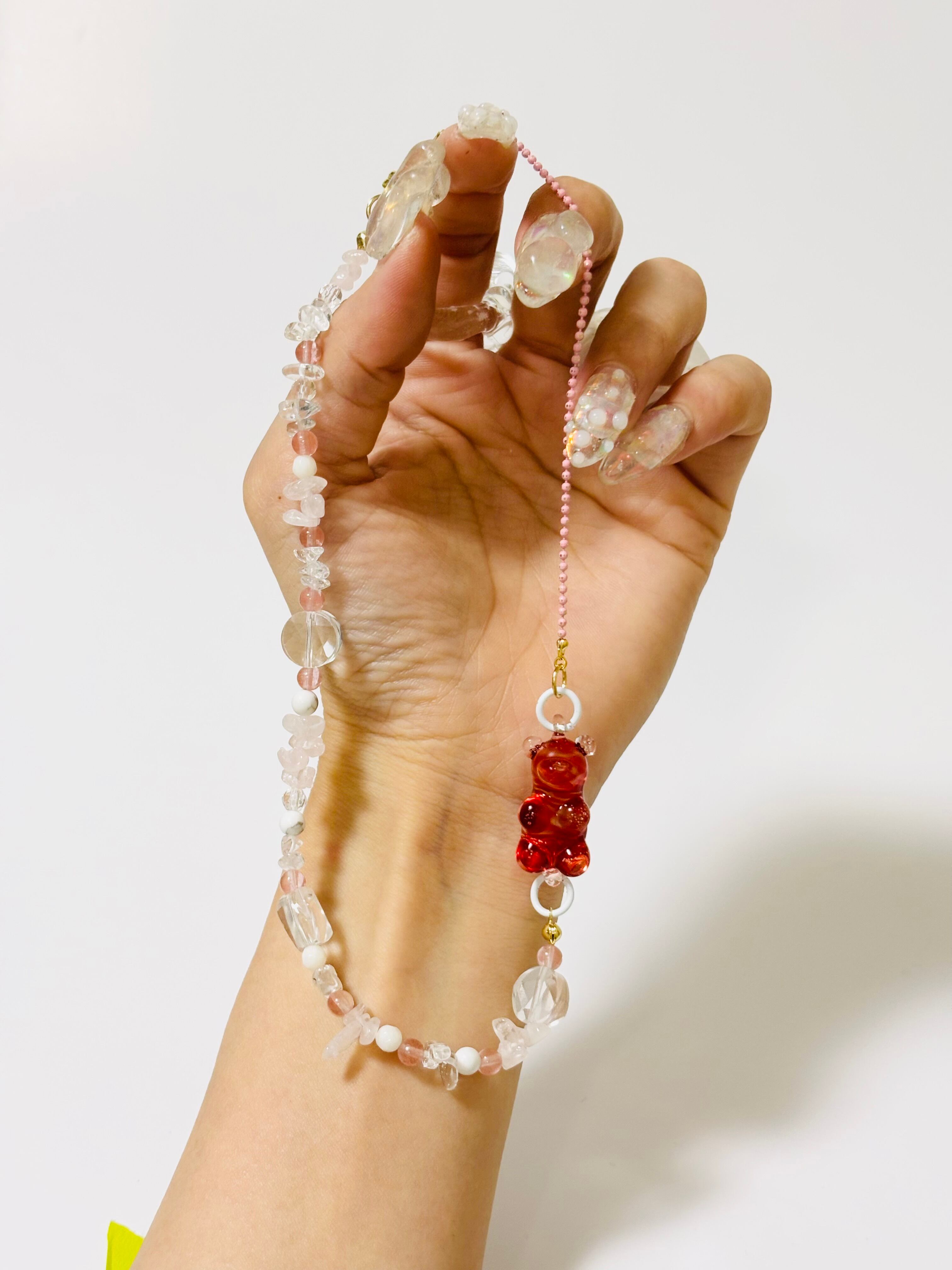 そんな方に向けて、着けて歩いた時、鏡に映ったとき、天然石のパワーとくまが寄り添ってくれるようなネックレスにしました♪