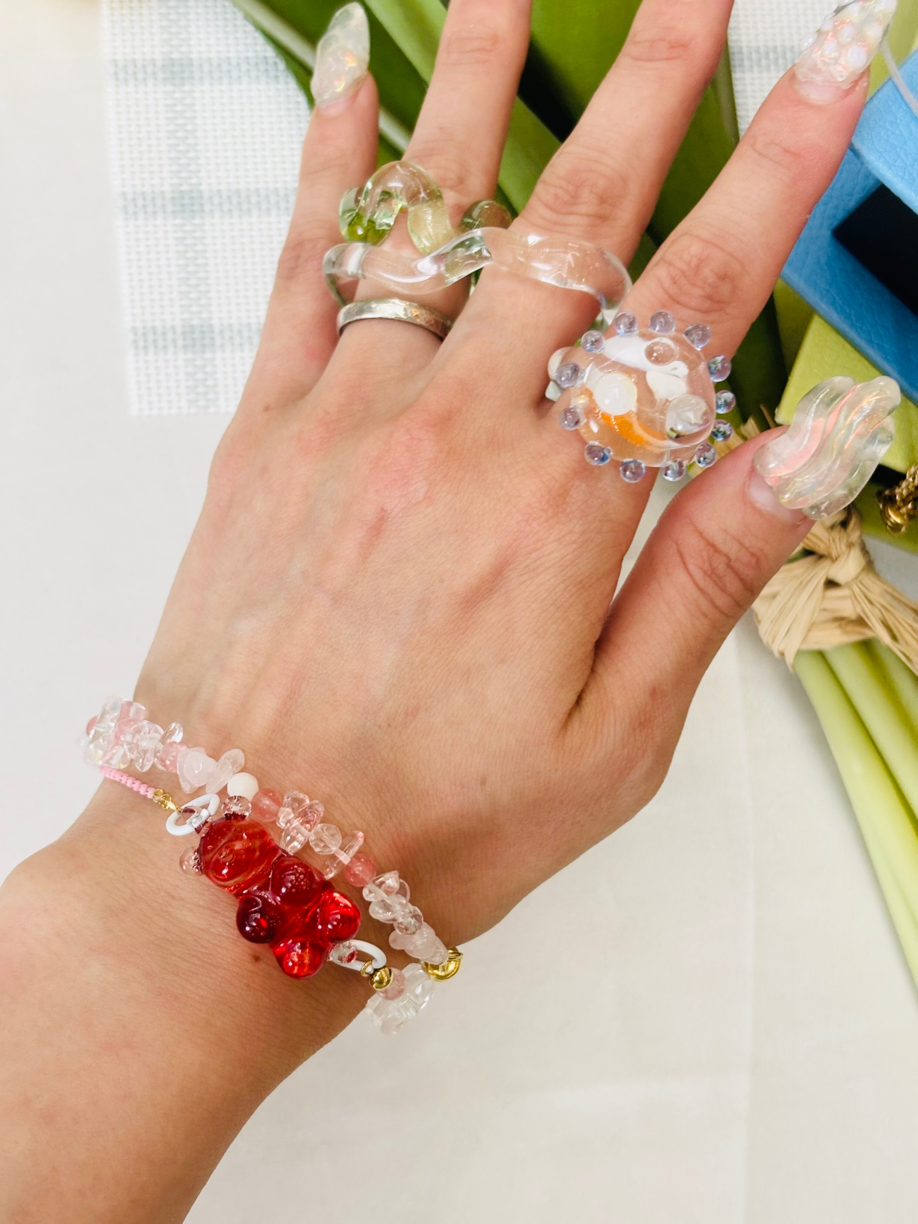 ・ガラス製品ですので、強い衝撃により割れることがあります。着用中は十分ご注意ください。