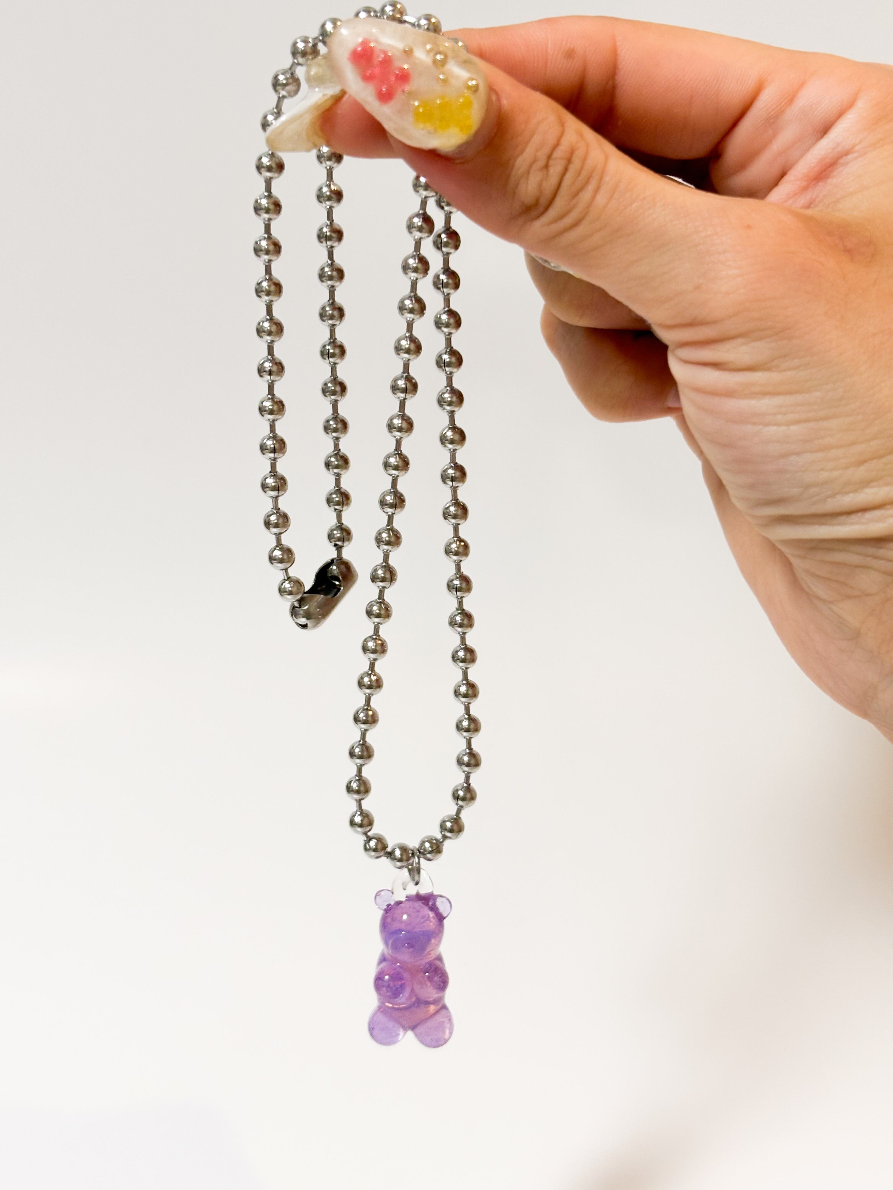 neon bear necklace(raspberry)