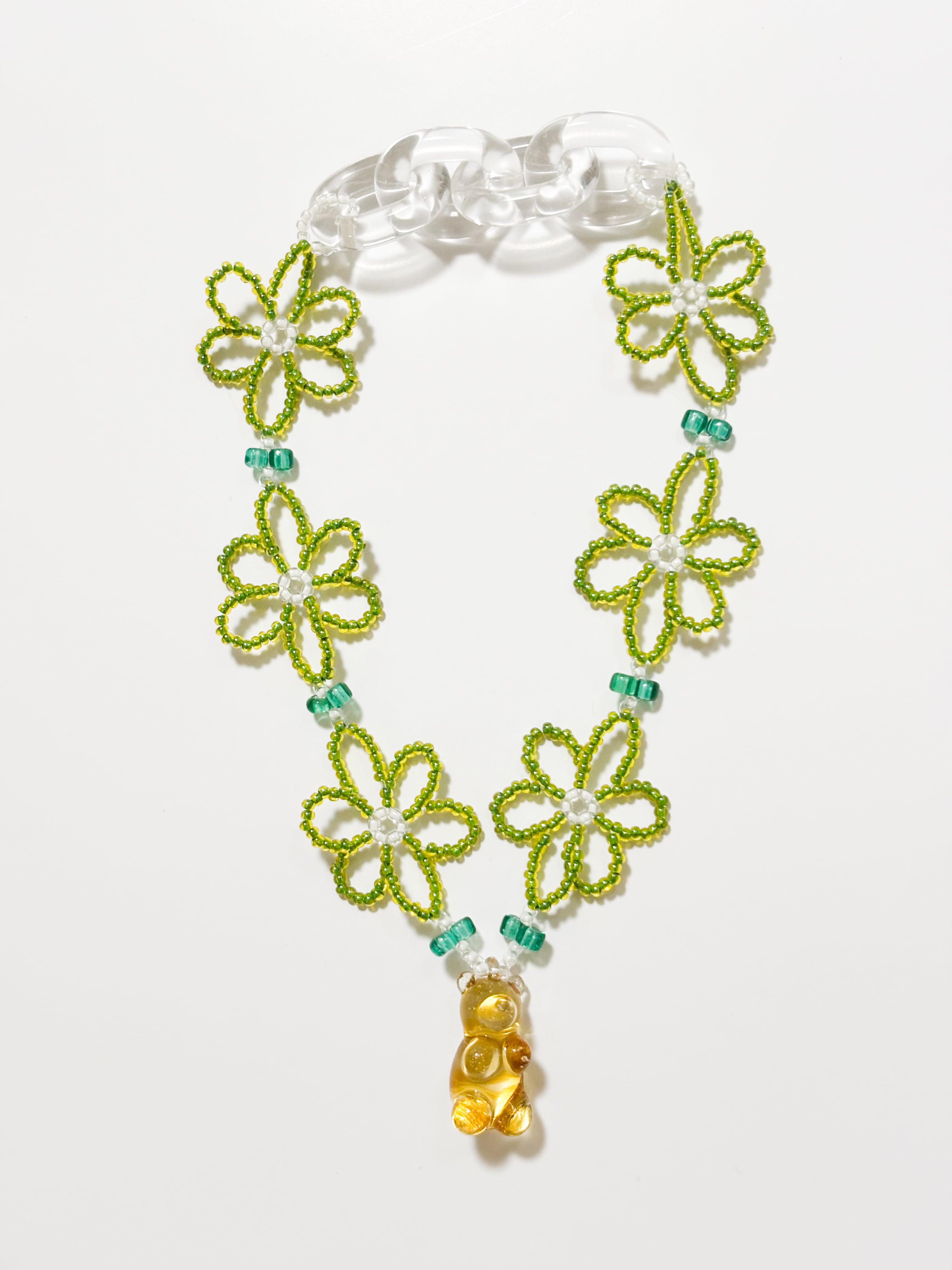 ・ビーズ部分はテグスで制作しております。過度な引っ張り等あると千切れてしまう恐れがあるので、必ず着脱はアクリルパーツの部分を摘んで行ってください。