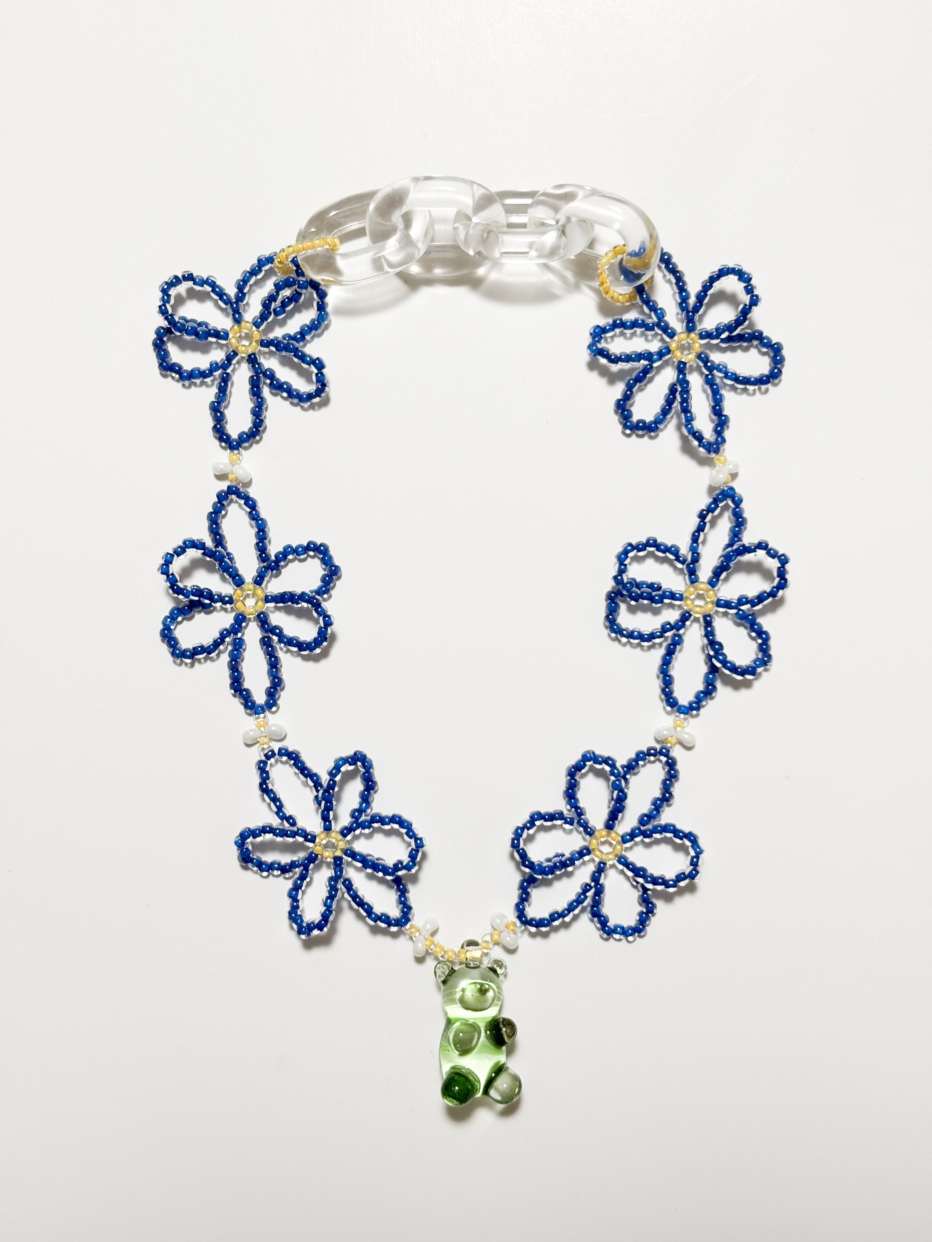 ビーズのお花とガラスのくまを合わせた作品です!