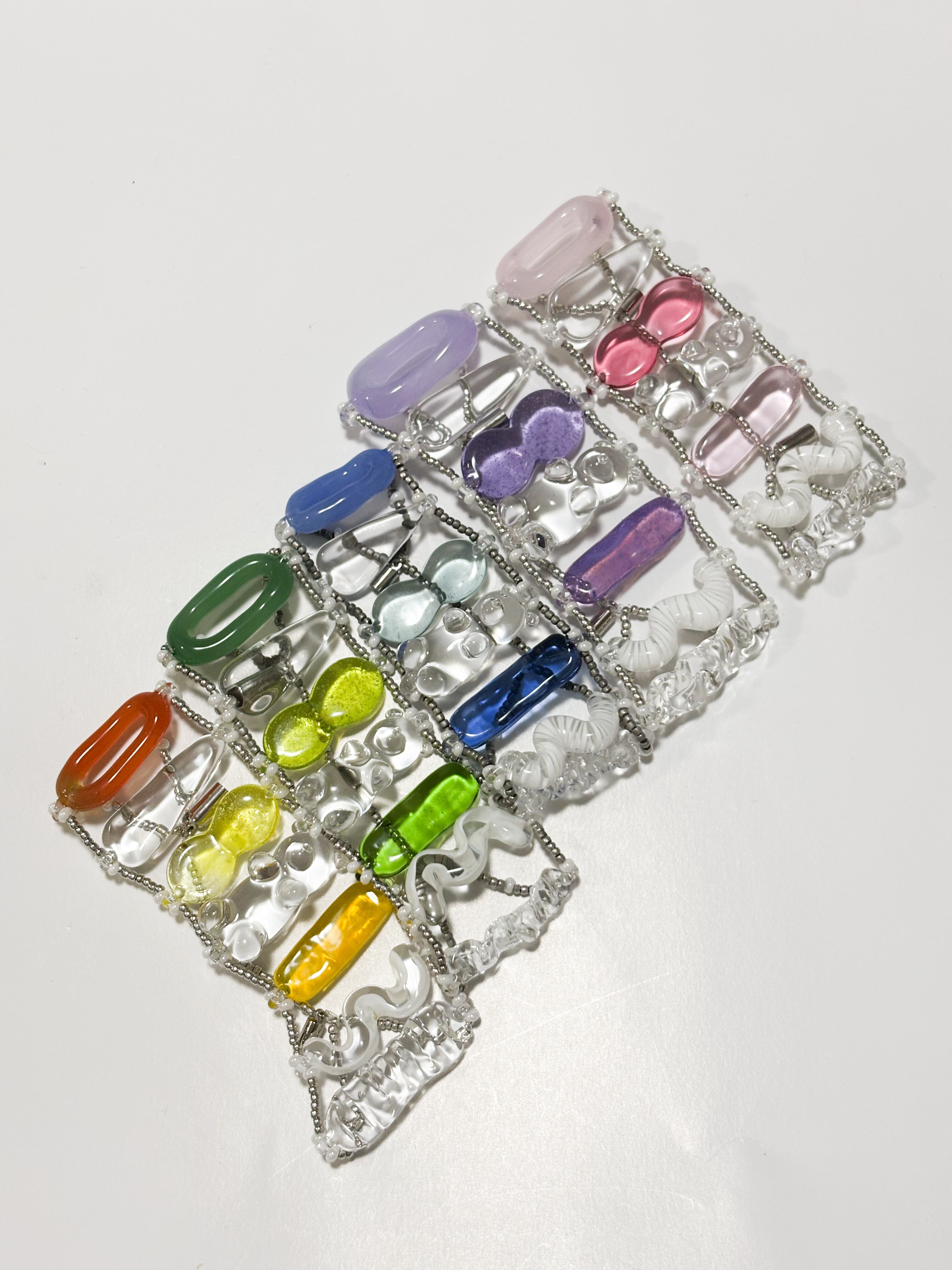 ・ガラス製品ですので、強い衝撃等により、割れてしまうことがあります。着用中には十分ご注意ください。