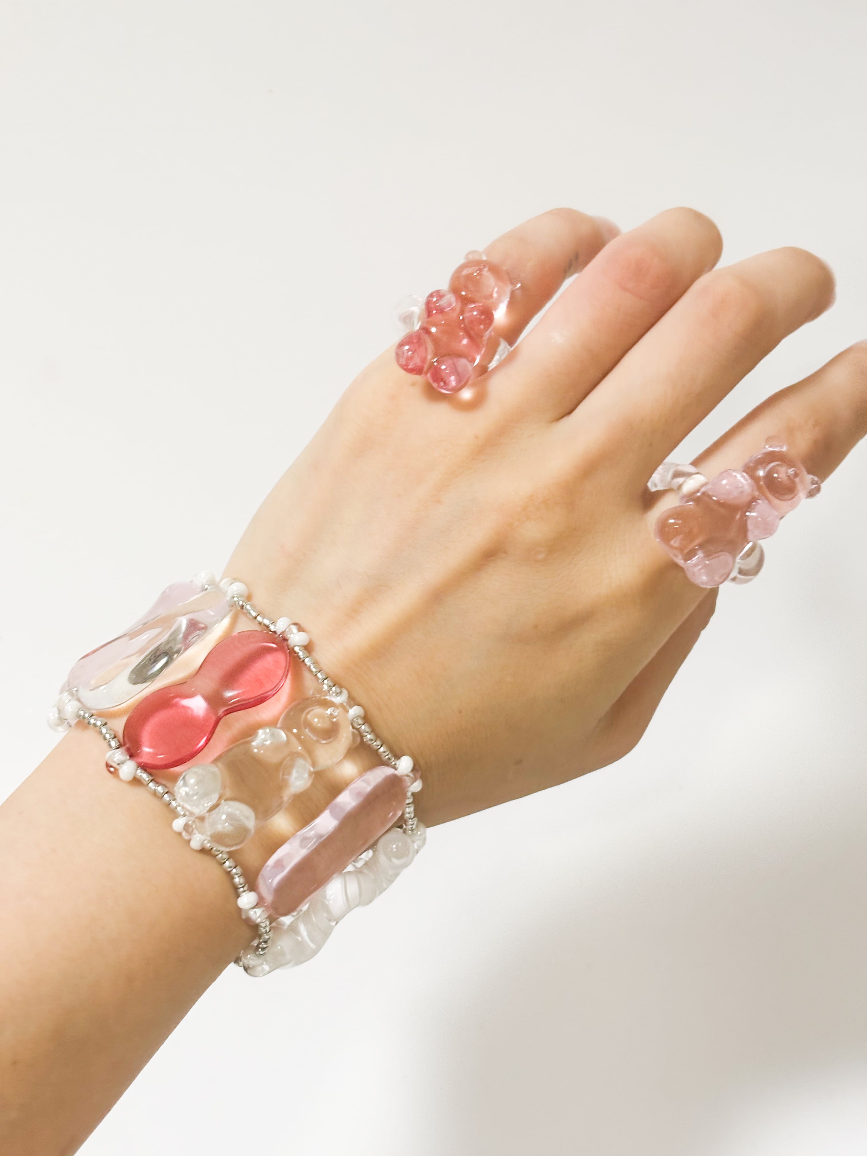 ・ガラス製品なので強い衝撃等受けると破損してしまう可能性があります。その場合、破損を防ぐため着用をお控え下さい。