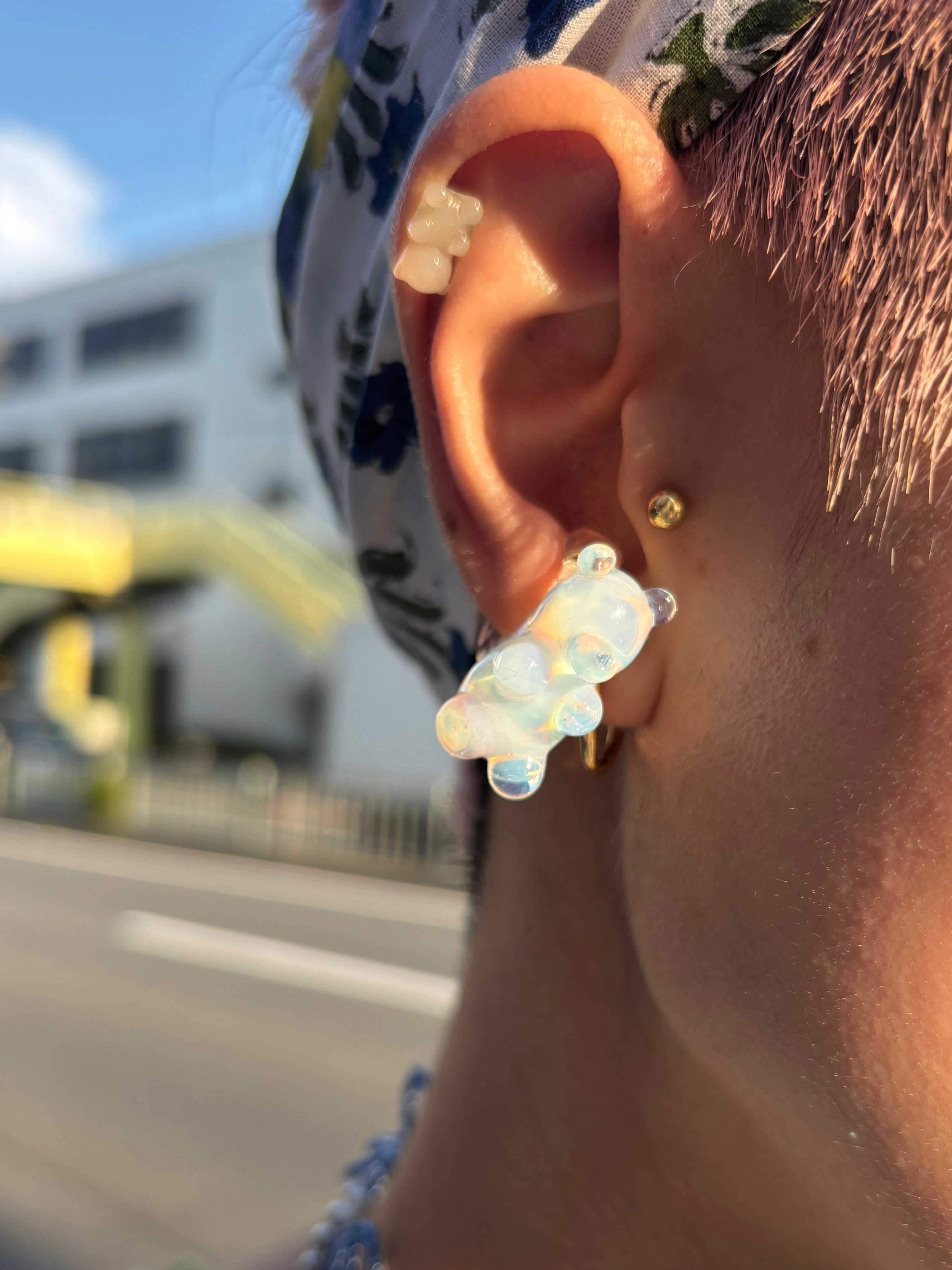 Uタイプ→耳たぶが薄く狭い、市販のear cuffを着けると落ちやすい方向け。耳の後ろでホールドできるように制作。ただし耳の穴の前の軟骨が分厚い、又は段差がかなりある方はCタイプ推奨。