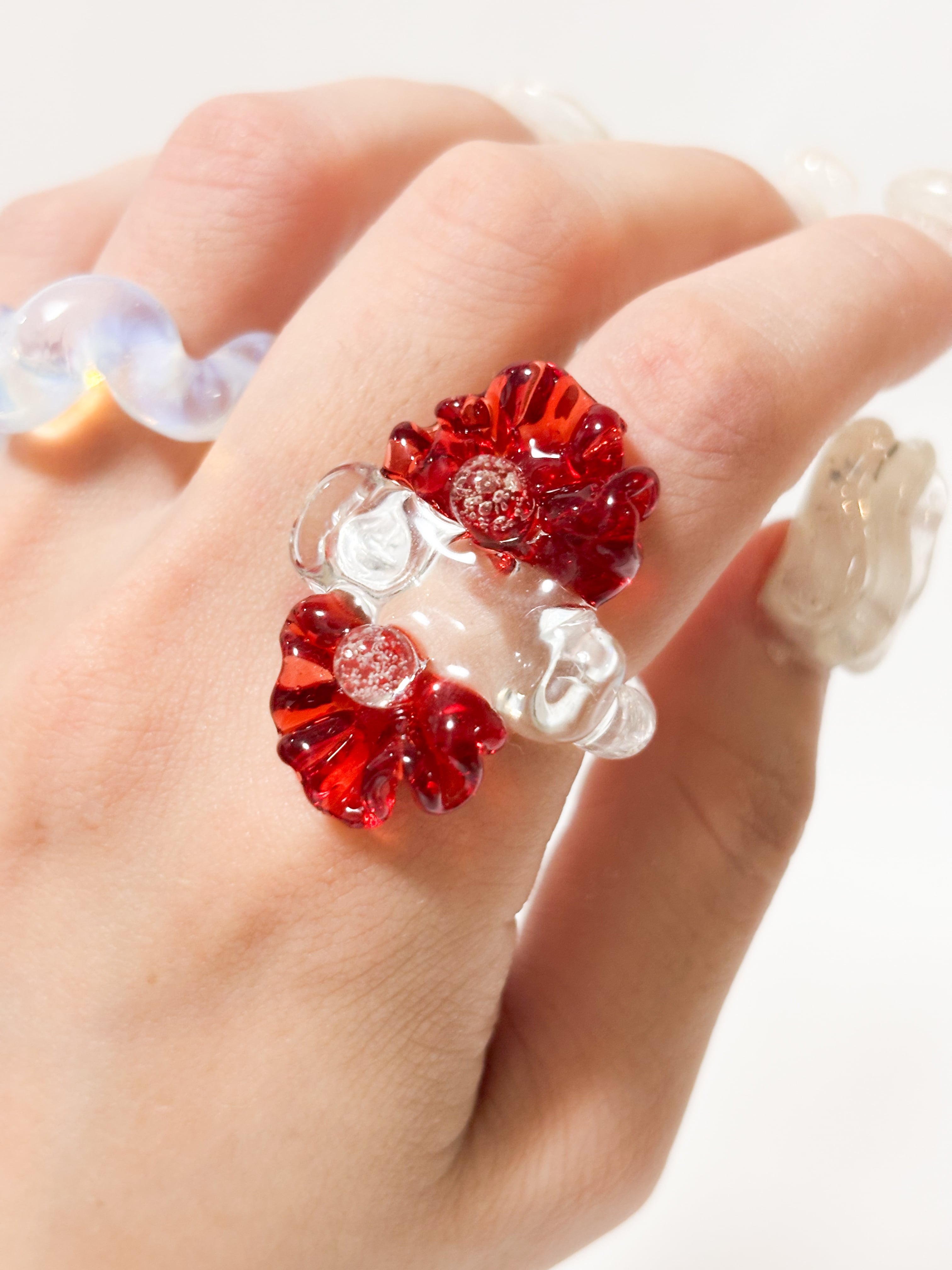 リボンを指に纏うような、人魚の柔らかいヒレのような、手元を華やかにしてくれるそんなリングを作りました♡